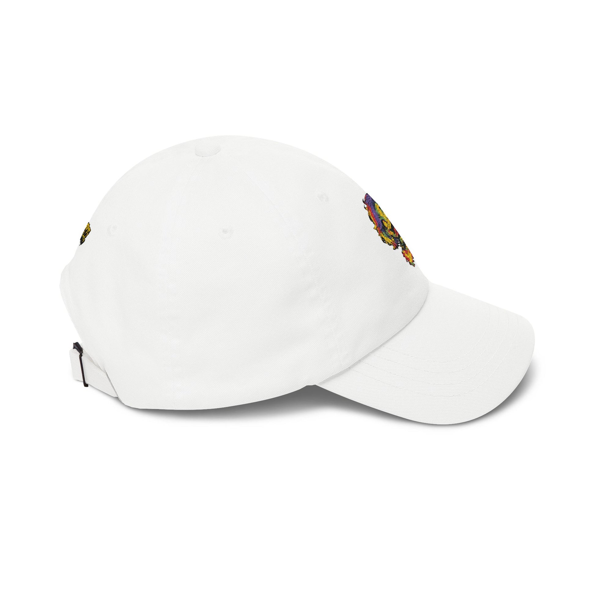 An offbeat, art-forward dad cap that brings playful chaos to everyday wear. The low-profile, unstructured silhouette keeps the vibe relaxed while a colorful embroidered character on the front becomes a focal point—loud, weird, and vividly detailed. From the little graffiti-style logo tucked above the closure to the matched underbill, every small design choice leans into street-art energy without feeling forced. Wear it to break up a neutral outfit, to top off a concert or skate session, or when you want your headwear to start conversations.
