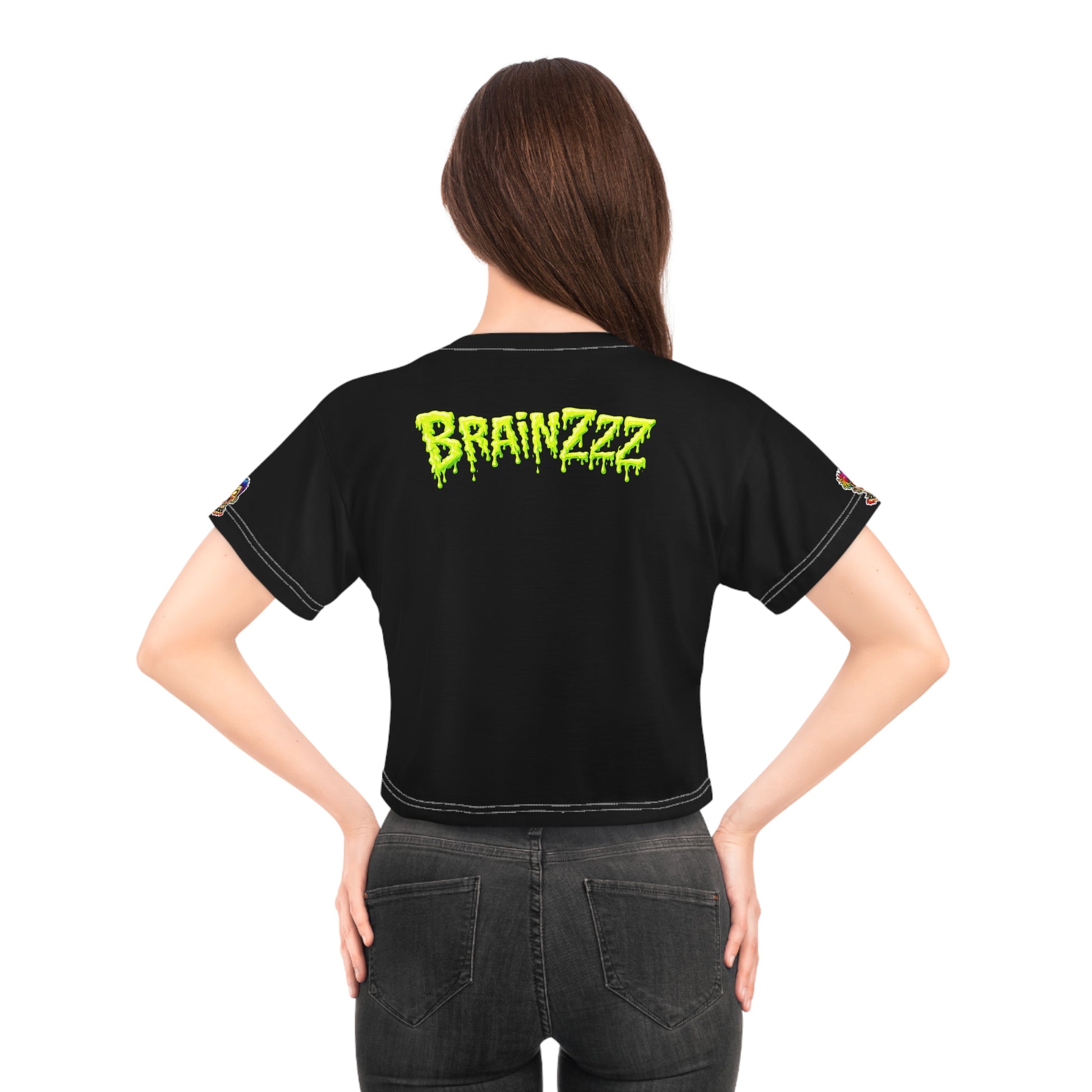 Zombie Punk Crop Tee — Colorful 'BRAI NZZZ' Horror Graphic